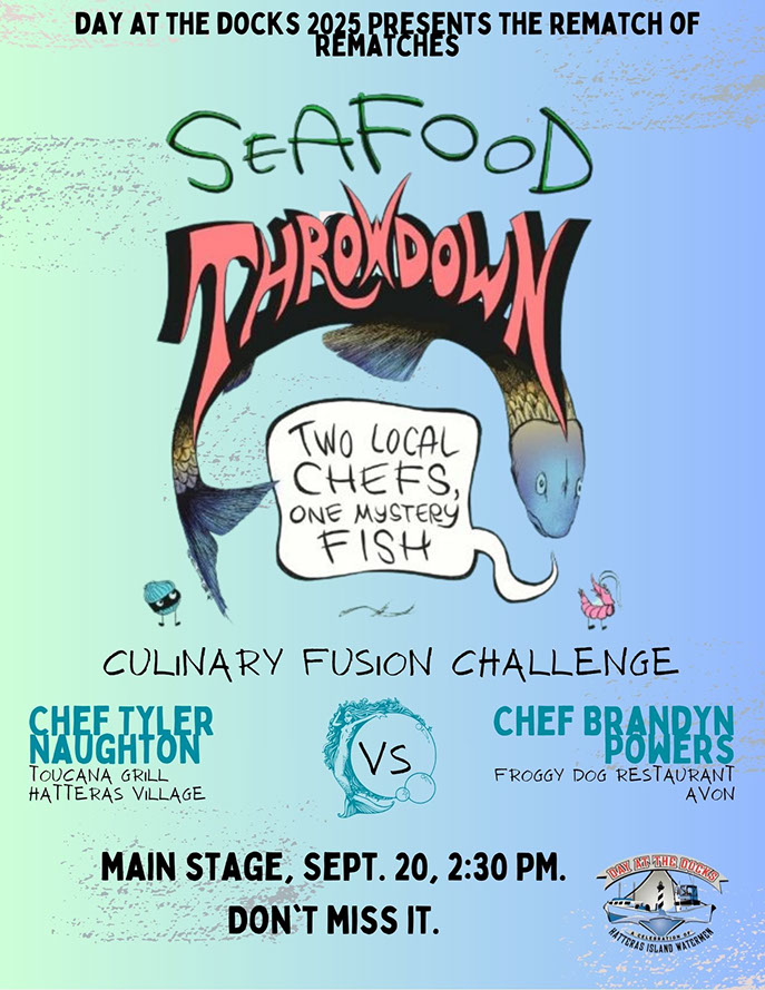 The freshness and flavor of our seafood inspires chefs and home cooks alike. During Day at the Docks two brilliant chefs appear on the stage for the Seafood Throwdown at 2:30 PM.