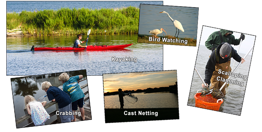 ideal setting for recreating, bird watching, fishing, crabbing,